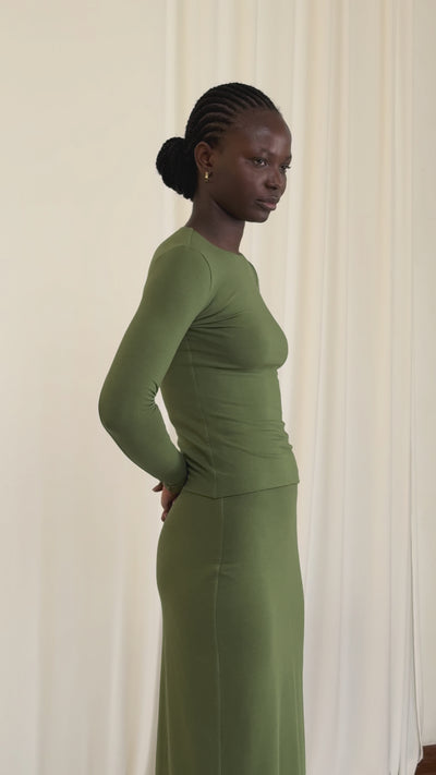 The 'Bourne Long Sleeve' is the ultimate wardrobe staple that will provide you with unlimited style options with ease. Wear it as a top to finish any outfits, or layer under our dresses to keep out the chill. It's a timeless silhouette made in a double-layered fabric that works like shape-wear.
