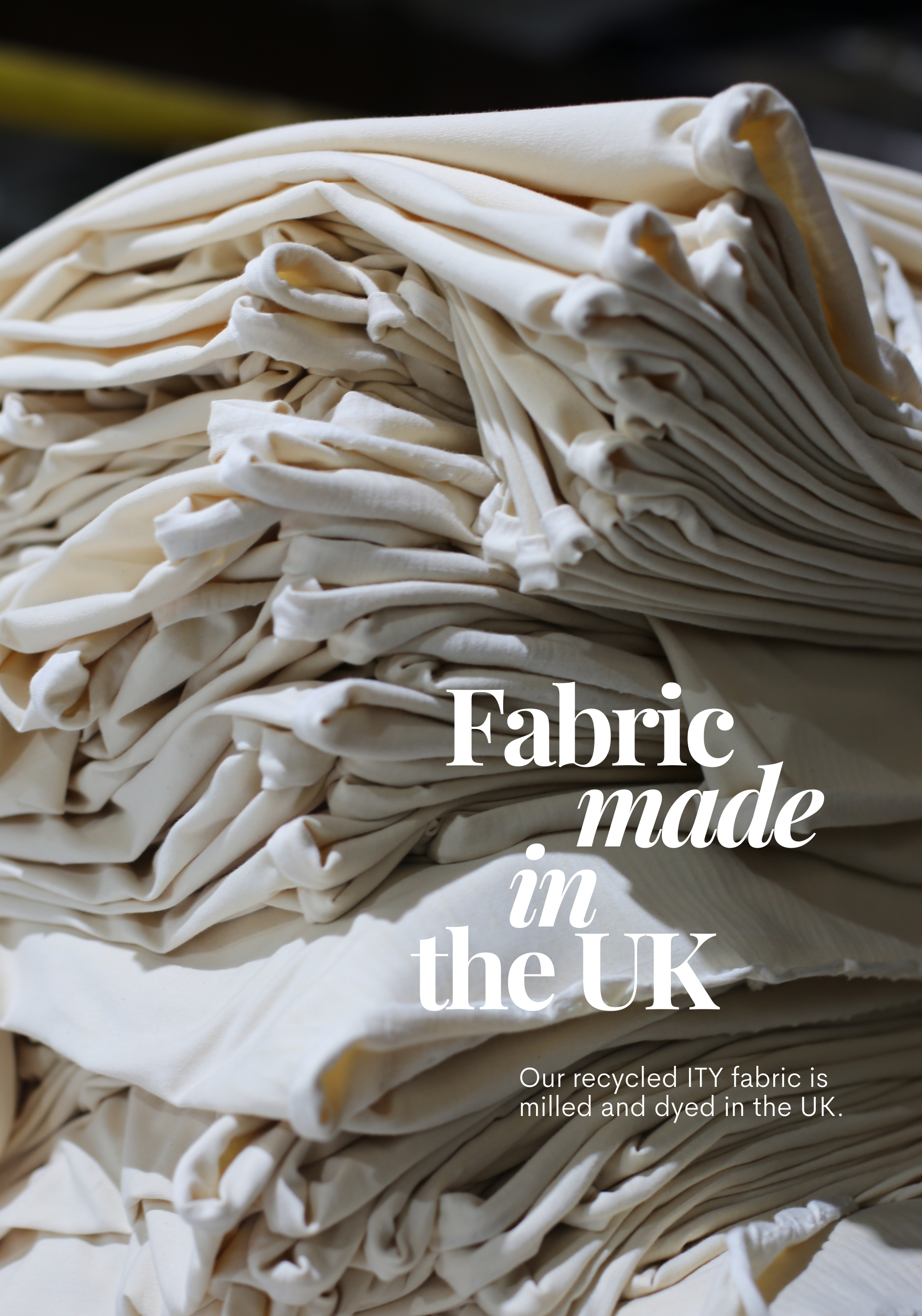 This is a soft fabric created using post-consumer bottles that is melted down and then re-spun into a polyester fibre. Post-consumer plastic bottles that normally end up in landfill are given a prolonged life. We choose this fabric on the garments that need to have shape-wear style properties.