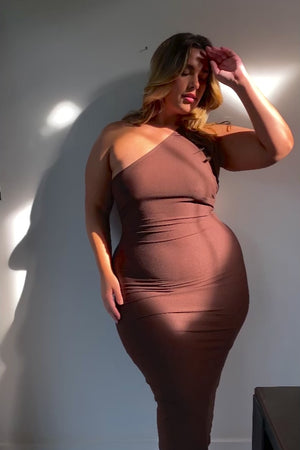 Make a statement in this sculptural silhouette. The Ashdown dress features an asymmetric neckline and curved cut-out back. The bust support comes from the heavy-weight, supportive fabric. If you want extra, we'd recommend boob tape underneath the garment. The fabric is a thick, single-layered, organic-certified (OEKO-TEX® and OSC) bamboo and cotton fabric. It's stretchy and comfortable to wear.