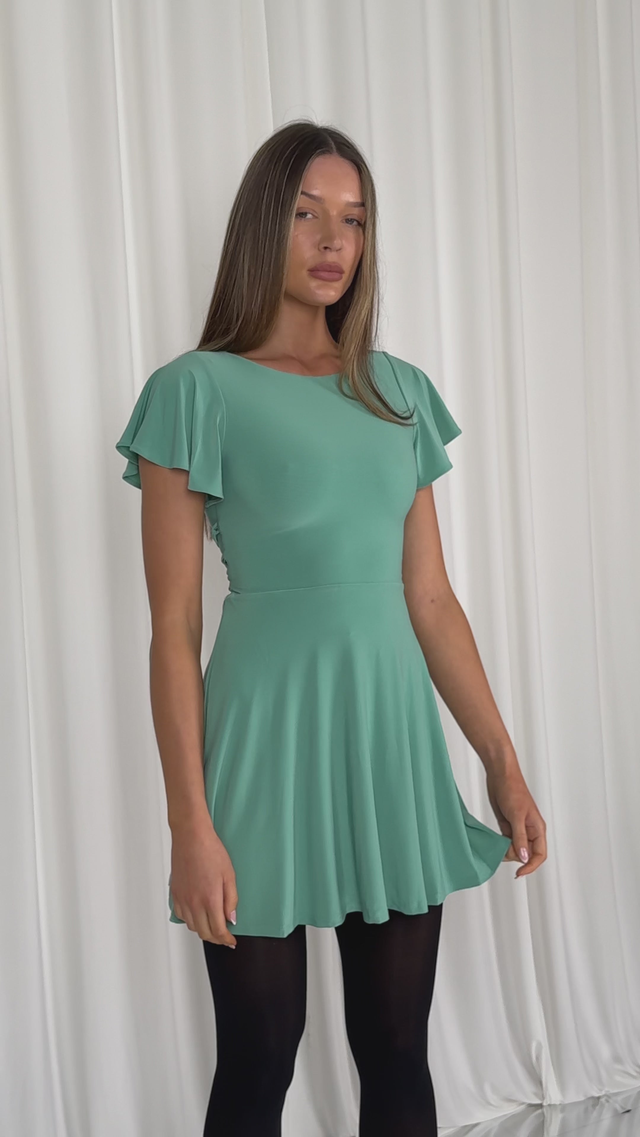 Look chic and effortless in the Ava Reversible Mini Dress. Reversible design feature adjustable corset-style waist to fit your figure perfectly. Constructed with frill sleeves, double layered skirt, and floaty body for a timeless look that stands the test of time.