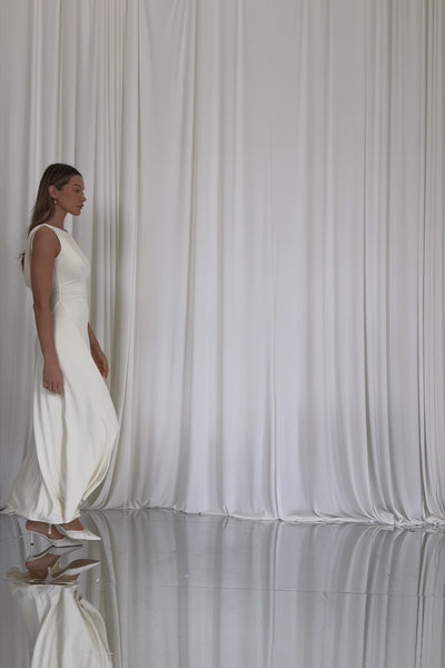 The Gaia Dress is designed to make you feel effortlessly beautiful for your most memorable moments. Its flowing maxi silhouette moves gently with you, creating a soft, flattering shape that feels as weightless as it looks.